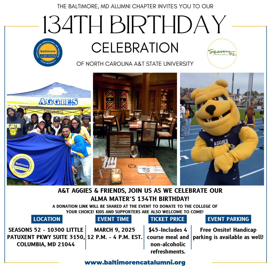 March 9, 2025 at 12 P.M., we will be holding a celebration of our alma mater at Seasons 52 in Columbia, MD. We mainly need you to promote and direct people to our chapter website to RSVP for it. The ticket will come in a follow-up email post RSVP.
